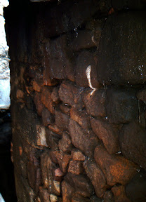 Paredes de otros edificios. Las tejas se han puesto para evitar que el rebabe de las tuberías se filtre entre la piedras