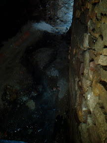Al fondo se ve luz procedentede un boquete abierto a tres metros de altura por el que estuvo a punto de caerse un obrero de la restauración de la capilla al romperse unos ladrillos que lo tapaban..